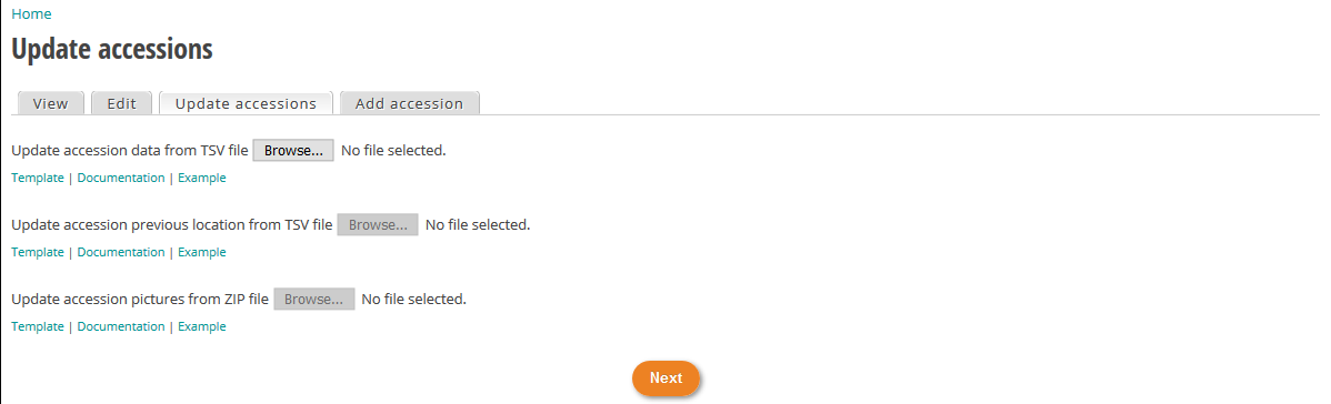 Now that you have saved your passport data click on the Update accessions tab to update information related to your collection.